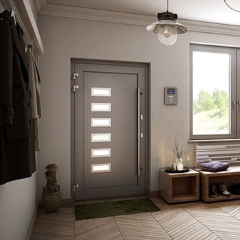 Nowoczesne i wytrzymałe drzwi aluminiowe będące synonimem eleganckiego designu i wysokiego poziomu bezpieczeństwa.
